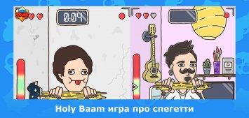 На экране мобильного устройства расположится виртуальная копия известного интернет-активиста, привлекающего свою аудиторию весьма необычным способом. Большинство блогеров поют песни, снимают клипы, позируют на фото и устраивают розыгрыши. Holy Baam – это уникальный представитель индустрии, выбравший совершенно иной стиль прокачки аккаунта. Большая аудитория собирается у него, чтобы посмотреть на ломание вермишели и насладиться расслабляющими звуками. К слову, последние смело можно назвать антистрессом. При этом юзерам не придется приобретать мягкие игрушки с шариками, всевозможные слаймы и многое другое.Концепция игры предельно проста – ломать спагетти в роли того самого блоггера из сети. Виртуальный протагонист расположится в своей комнатке перед записывающей видеокамерой. Конечно, все будет происходить в прямом эфире. У героя есть неограниченное количество тонкой вермишели, которую и предстоит отчаянно превращать в обломки хлебобулочных изделий. Чем интенсивнее ломка, тем больше просмотром на канале. Последние поддаются монетизации, на которую можно приобретать различные предметы. Заработанные средства тратятся на эпичные костюмы, интересную мебель и прикольный декор.
