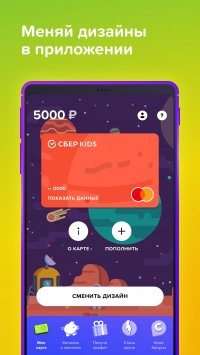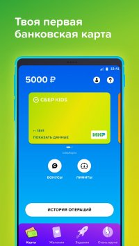 СберKids является упрощенной формой официального приложения Сбербанк онлайн. После оформления детской версии банковской карты, родителям необходимо пройти процедуру регистрации. Для этого нужно авторизоваться, а также установить сопряжение с собственным аккаунтом. Это необходимая мера для того, чтобы контролировать расходы ребенка и перечислять средства. Последнее включает не только стандартные действия, но и фиксацию определенного уровня трат. Вы сможете самостоятельно решить, сколько чадо может израсходовать денег. Конечно, также осуществляется полный контроль за покупками, благодаря подробным отчетам с магазинов, сервисов и т.д.Приложение включает информационные блоки, рассказывающие о повышении финансовой грамотности. Ребенок сможет в игровой и ненавязчивой форме освоить полезные знания и отыскать ответы на вопросы. Визуальная составляющая программы повторяет стиль оригинала под соусом детской направленности. Юный пользователь сможет быстро освоить особенности интерфейса и навигации по меню. К сожалению, установить работающую актуальную версию СберKids на мобильные устройства операционной системы iOS со сторонних порталов невозможно. На нашем сайте предоставлена версия для Андроид. Владельцы Айфонов могут отыскать файл на просторах маркетплейса AppStore.