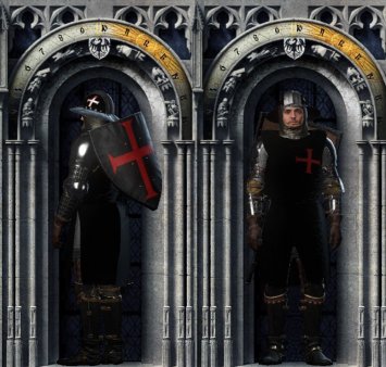 Этот мод заменяет текстуру длинный талмбергский военный мундир, черно-белый клетчатый конный капарион, щит и двухкомпонентный шлем (названия могут быть не точными).