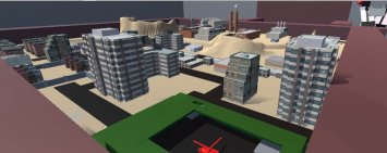 Качественная, хорошо прорисованная городская карта 桌游(舰B警告)для боевых сражений в игре Ravenfield на городских улочках между высотными зданиями и песочной насыпью.