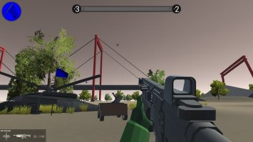 На карте присутствуют деревья, несколько барьеров и объектов столкновений, проработана текстура земли и некоторое дополнительное пространство вокруг оригинальной области карты.
